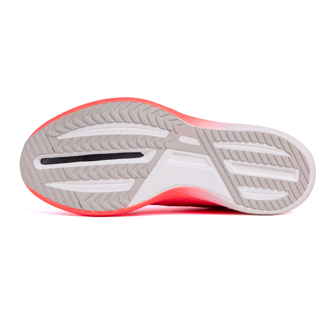 • Полноразмерная карбоновая пластина в промежуточной EVA-подошве по технологии Spine Carbon-Reinforced поддерживает стопу и вносит дополнительный заряд в отталкивание техничного бегуна, повышая его эффективность.